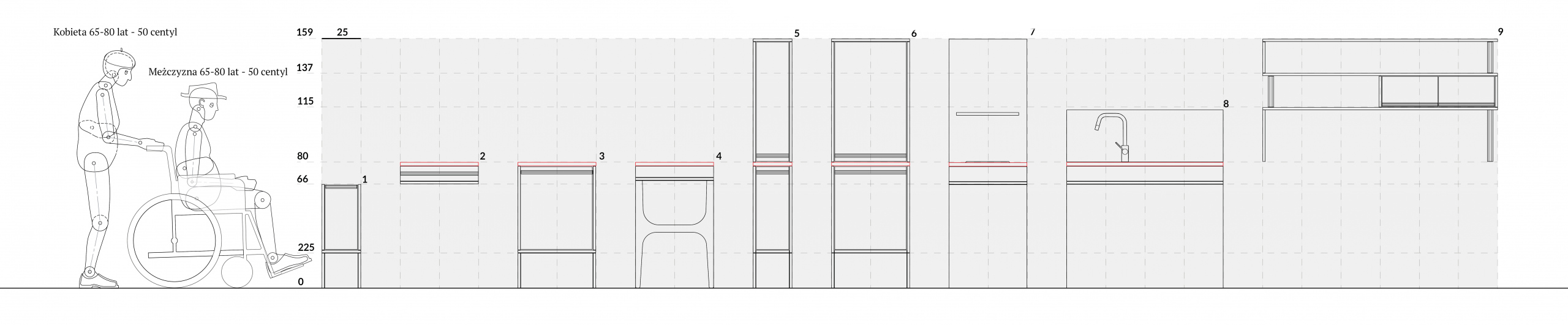 Projekt przeznaczony jest dla osób starszych oraz osób z dysfunkcjami ruchu, w tym użytkowników wózków inwalidzkich. Jego głównym celem było połączenie funkcji przygotowywania prostych posiłków z tworzeniem przestrzeni sprzyjającej kontaktom społecznym. Kluczowymi założeniami projektu były bezpieczeństwo użytkowników oraz niestygmatyzująca estetyka, umożliwiająca komfortowe i samodzielne korzystanie z przestrzeni kuchennej. Koncepcja opiera się na systemie dziesięciu modułów o zróżnicowanych funkcjach i wymiarach. Takie rozwiązanie pozwala na tworzenie wielu konfiguracji, dostosowanych do potrzeb oraz warunków przestrzennych obiektów wspólnych, również takich jak sanatoria czy szpitale rehabilitacyjne. Stylistyka projektu nawiązuje do estetyki młodości obecnych seniorów, budując atmosferę znajomą i przyjazną, a jednocześnie odpowiadającą współczesnym standardom wzornictwa. Projekt bazuje na typowej konstrukcji z płyty meblowej, co zapewnia trwałość oraz umożliwia jego wdrożenie do produkcji seryjnej.