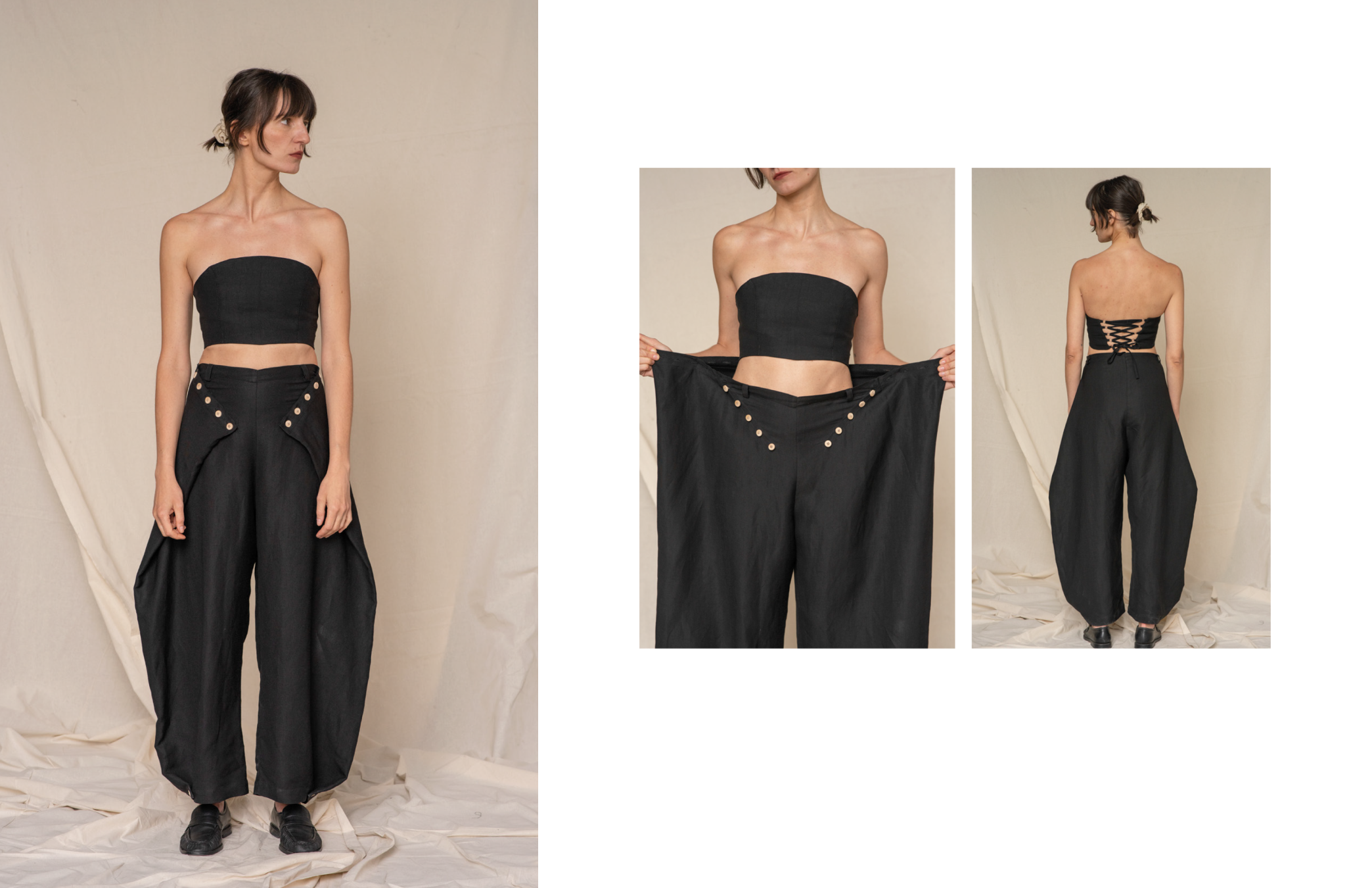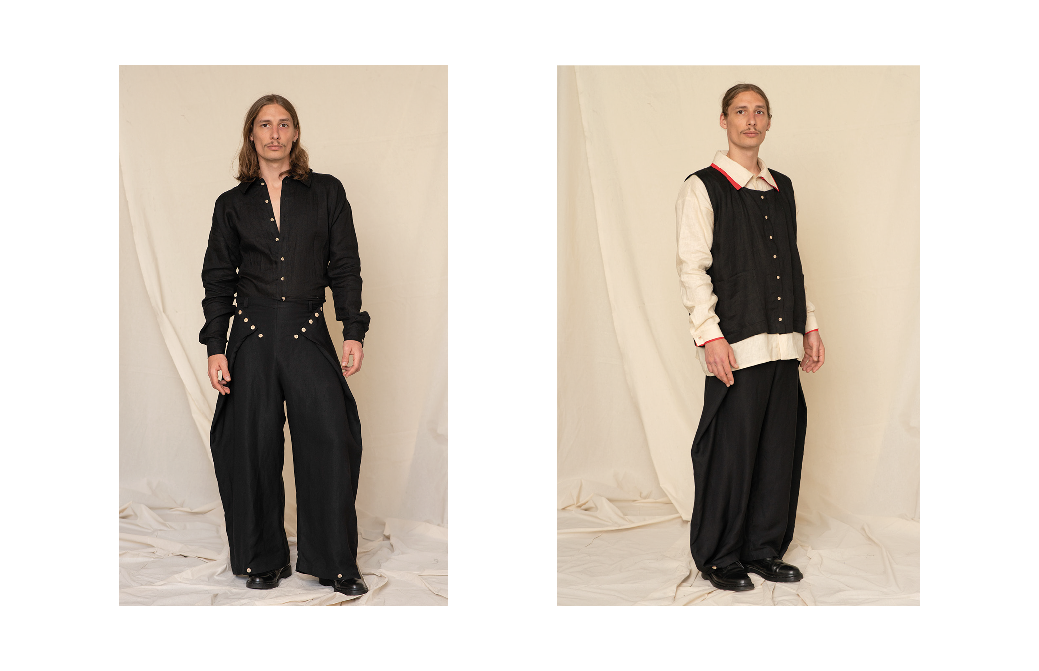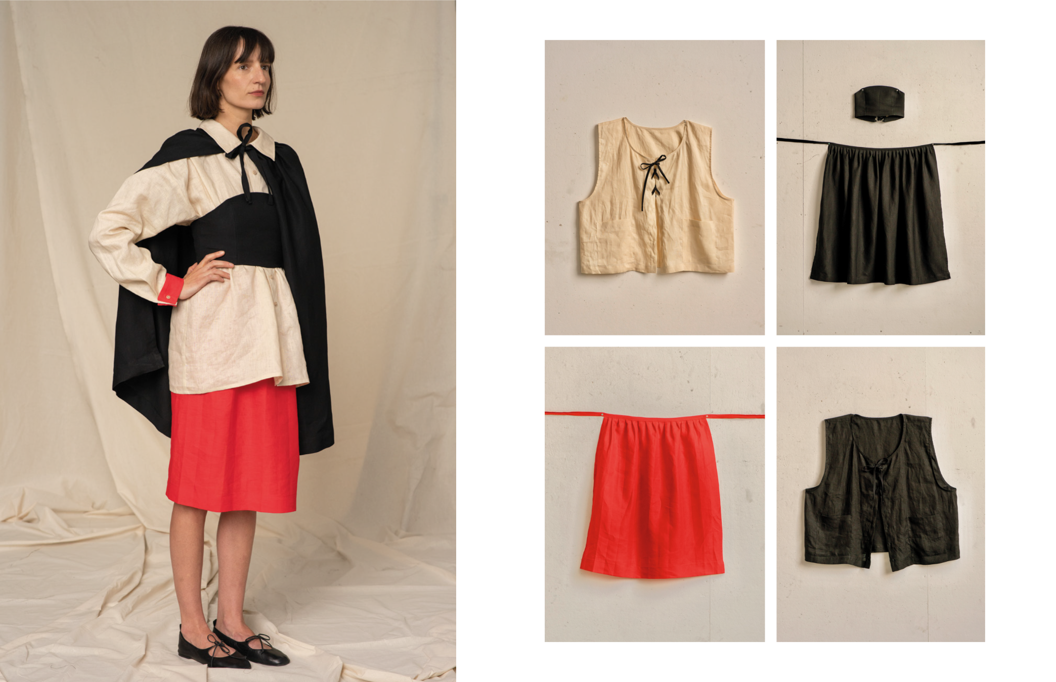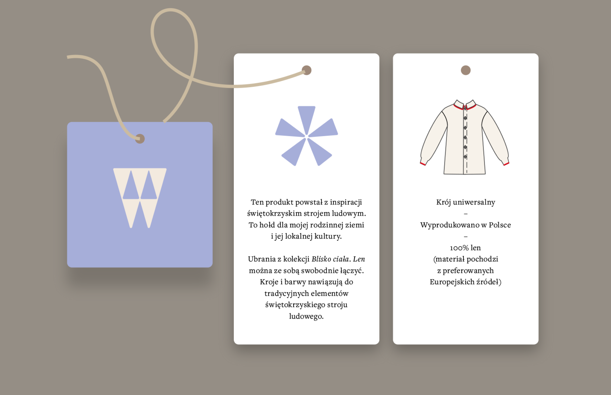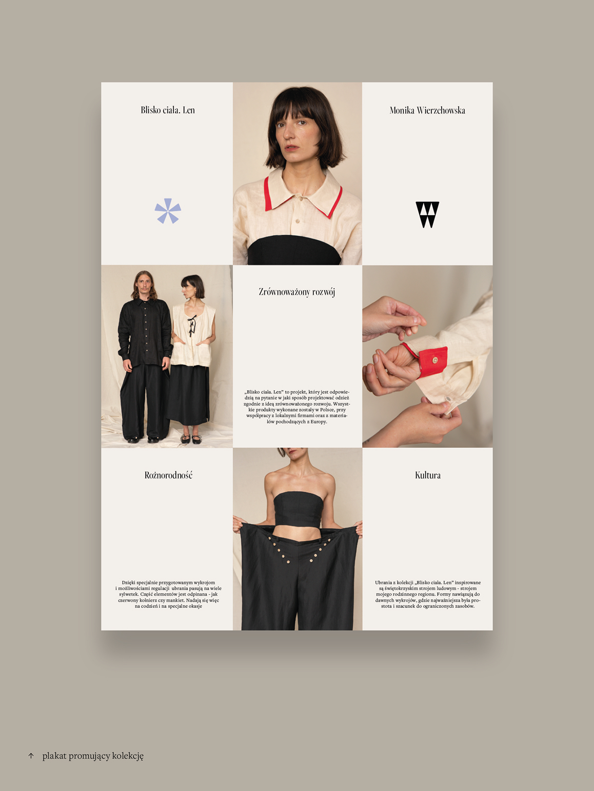 Część projektowa obejmuje kapsułową kolekcję odzieży lnianej oraz koncepcję transparentnie działającej marki. Zaprojektowane formy są uniwersalne, posiadają szeroki zakres rozmiarowy, a dzięki regulacjom i odpinanym elementom – inspirowanym strojem ludowym – mogą być użytkowane na różne sposoby. Całość została pomyślana tak, aby ubrania mogły towarzyszyć użytkownikowi przez lata, zarówno w codziennych, jak i bardziej formalnych sytuacjach.