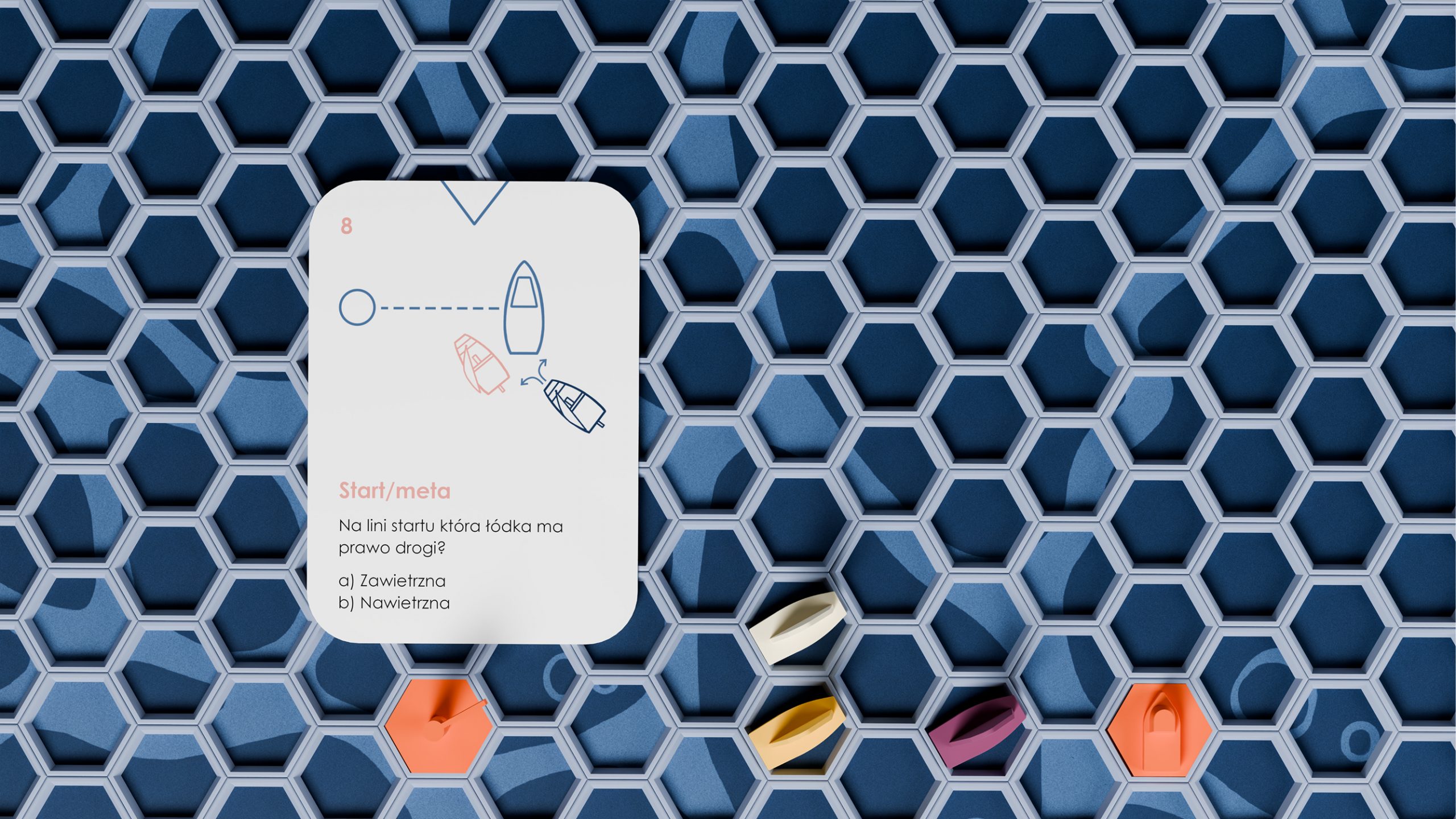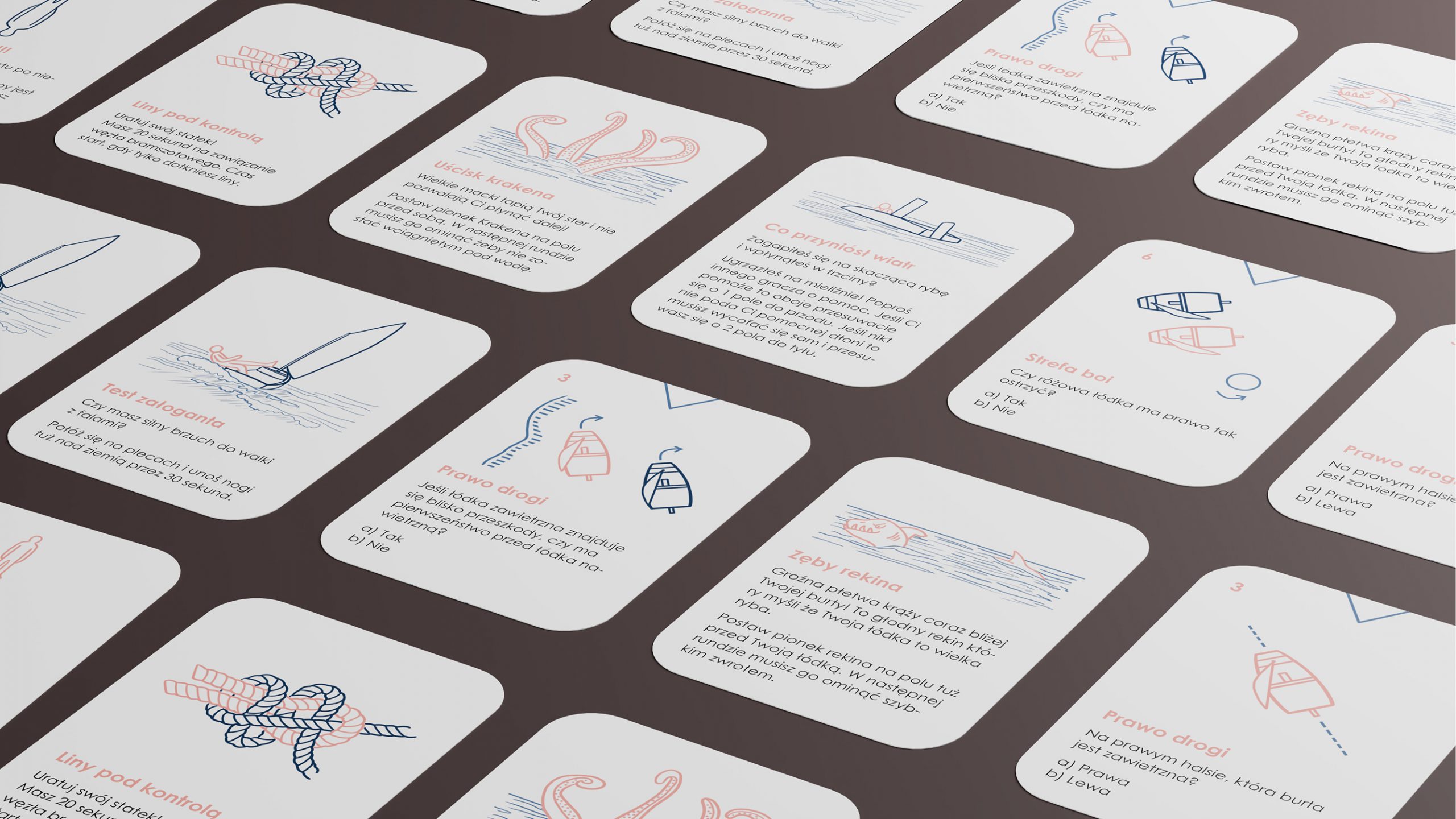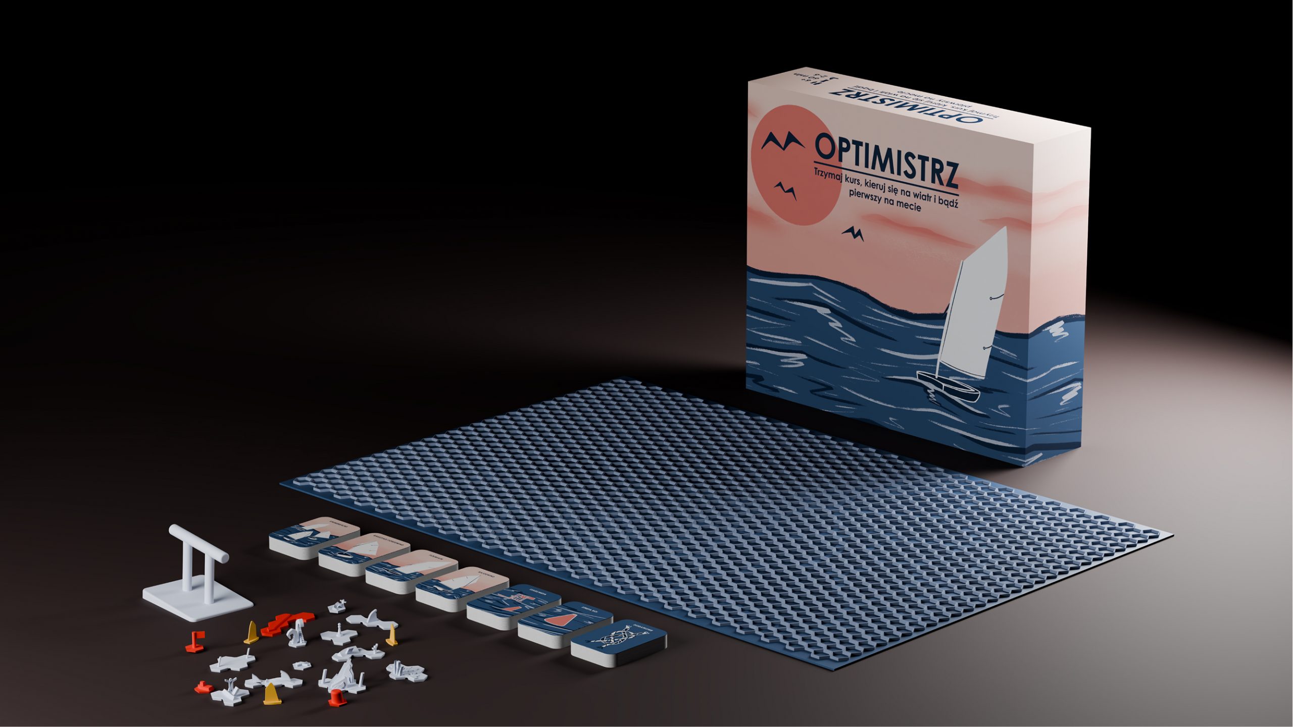 Ostatnia część opracowania skupia się na aspekcie wizualnym i funkcjonalnym poszczególnych elementów, prezentując finalną formę projektu. Zaproponowany zestaw, oparty na mechanizmach gry, stanowi odpowiedź na problem pasywnej edukacji regatowej, wspierając rozwój wiedzy teoretycznej oraz budowanie pewności siebie u najmłodszych żeglarzy przed praktyką na wodzie.