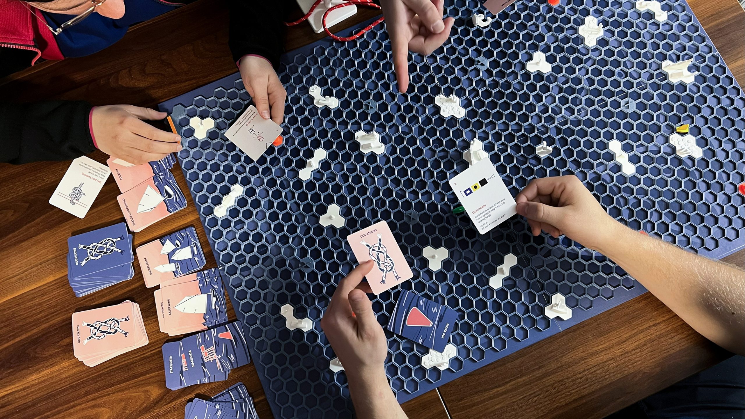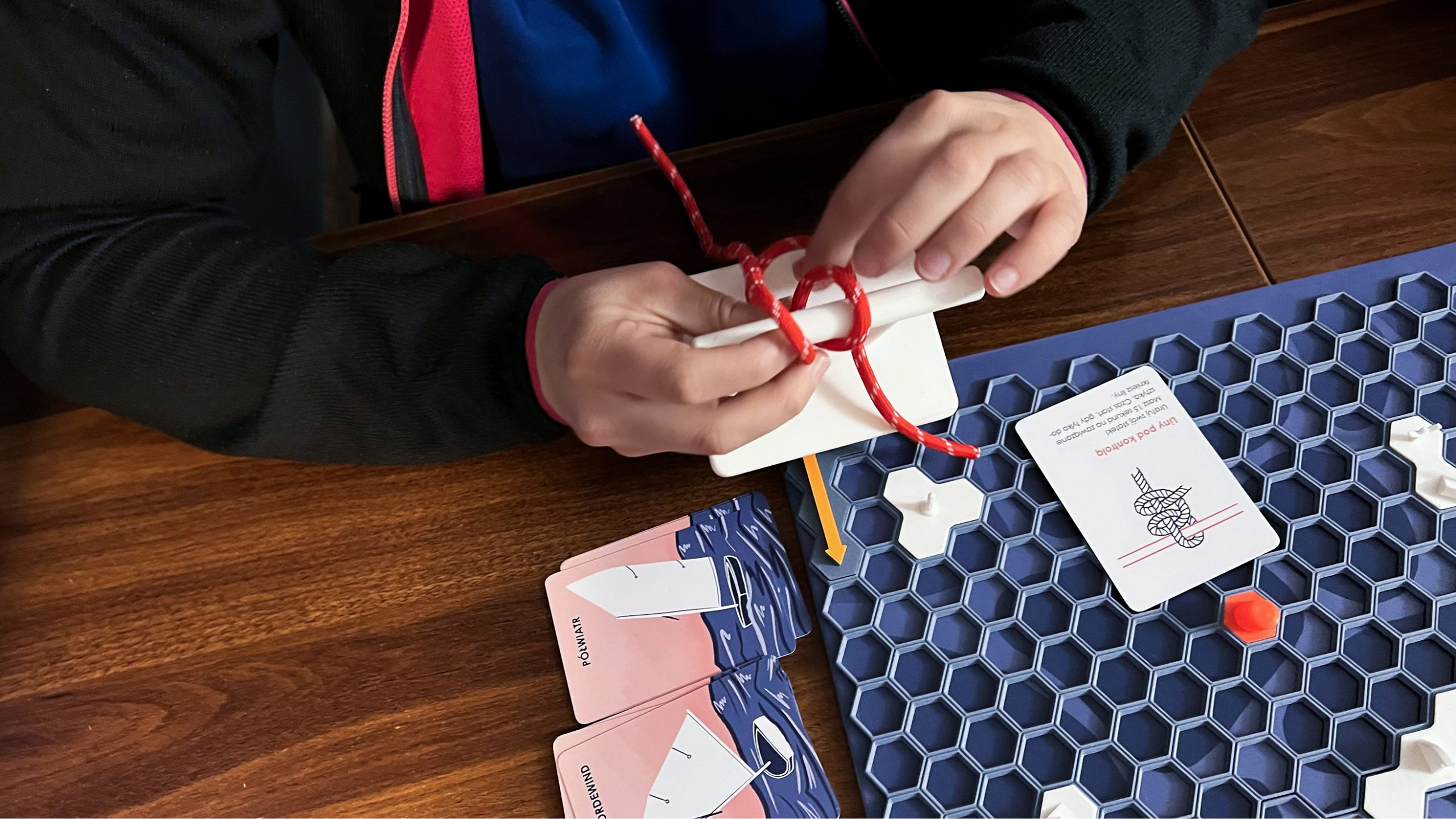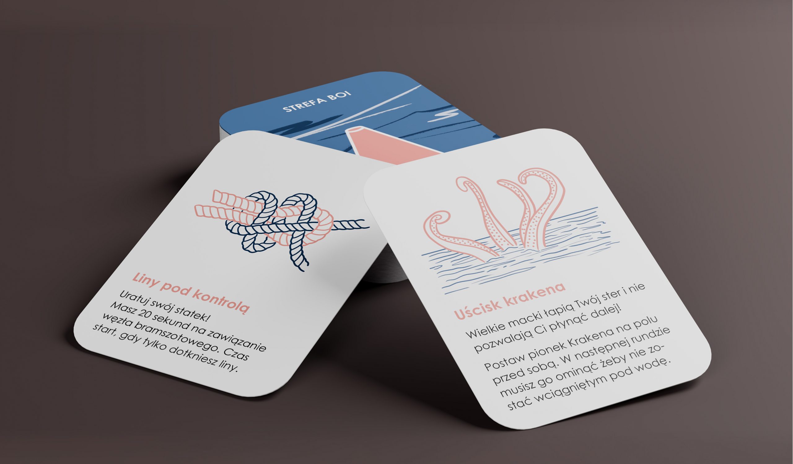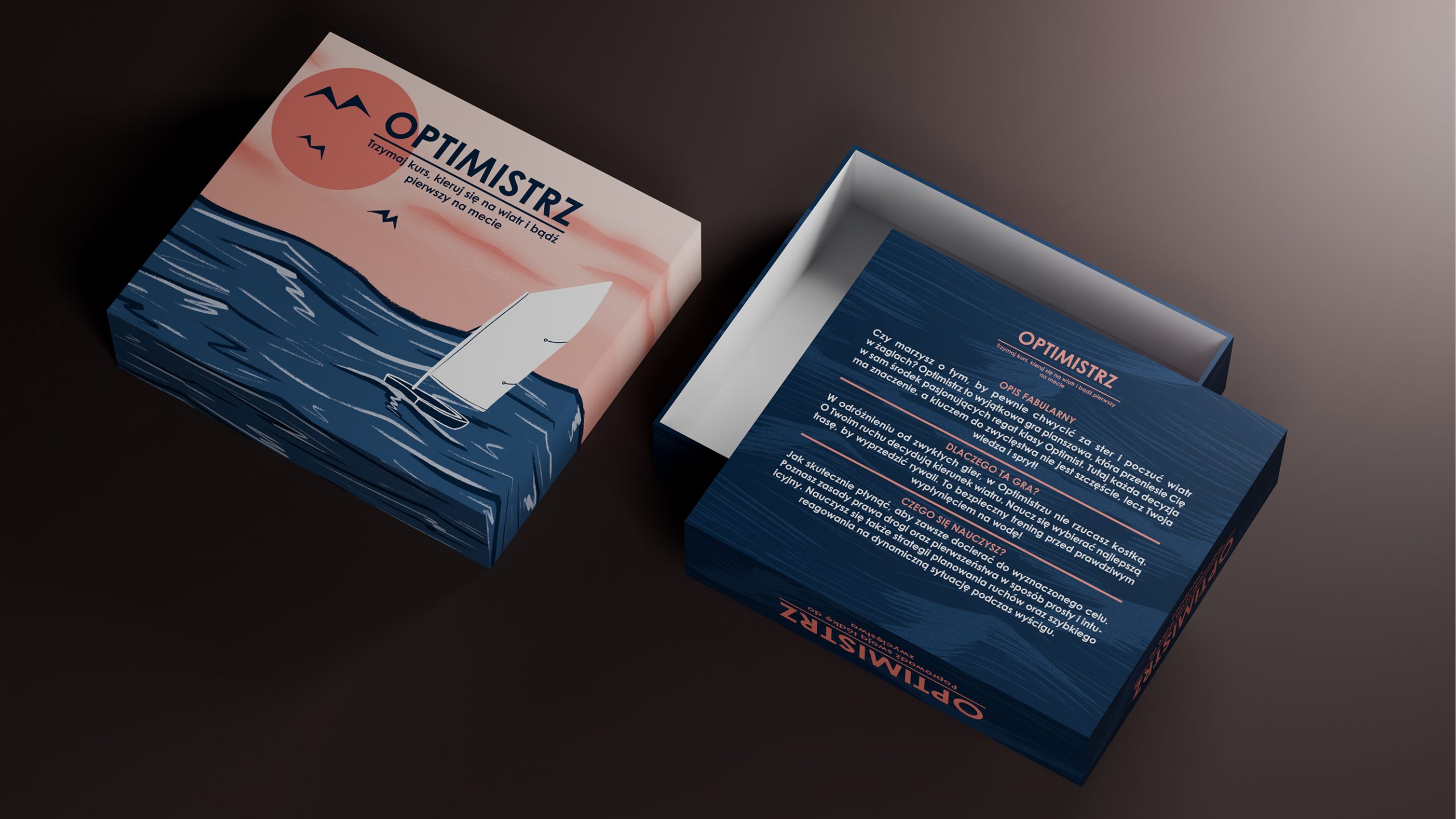 Ostatnia część opracowania skupia się na aspekcie wizualnym i funkcjonalnym poszczególnych elementów, prezentując finalną formę projektu. Zaproponowany zestaw, oparty na mechanizmach gry, stanowi odpowiedź na problem pasywnej edukacji regatowej, wspierając rozwój wiedzy teoretycznej oraz budowanie pewności siebie u najmłodszych żeglarzy przed praktyką na wodzie.