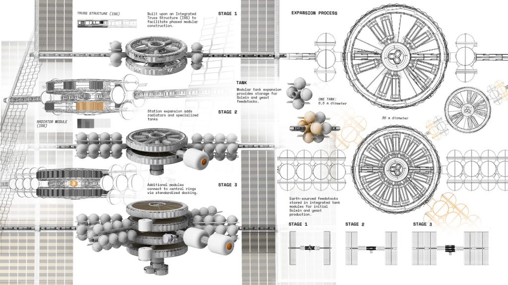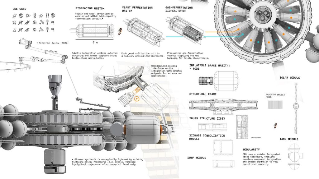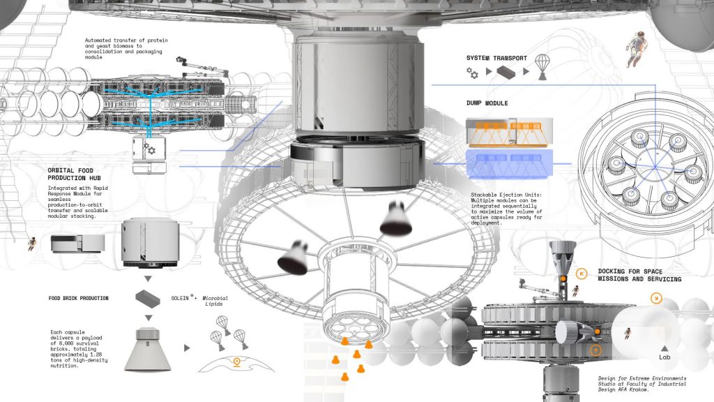 Projekt wyróżniony przez jury to wizjonerska koncepcja orbitalnej fabryki żywności, pełniącej rolę strategicznej rezerwy dla Ziemi. Zakłada: