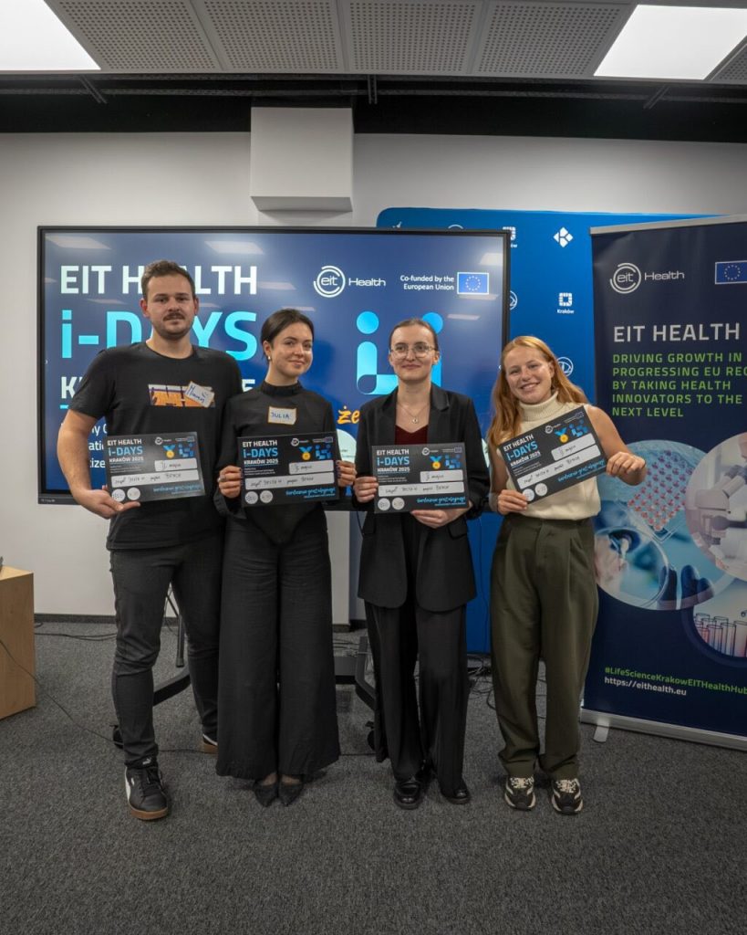 W dniu 25.10.25 odbył się w Krakowie 12-to godzinny hackathon EIT Health i-Days 2025. Studenci, młodzi naukowcy, entuzjaści technologii i zdrowego stylu życia pracowali w zespołach nad pomysłami, które mogą realnie zmieniać nasze otoczenie. W tym wydarzeniu wzięły udział dwie drużyny składające się z reprezentantów naszego wydziału: