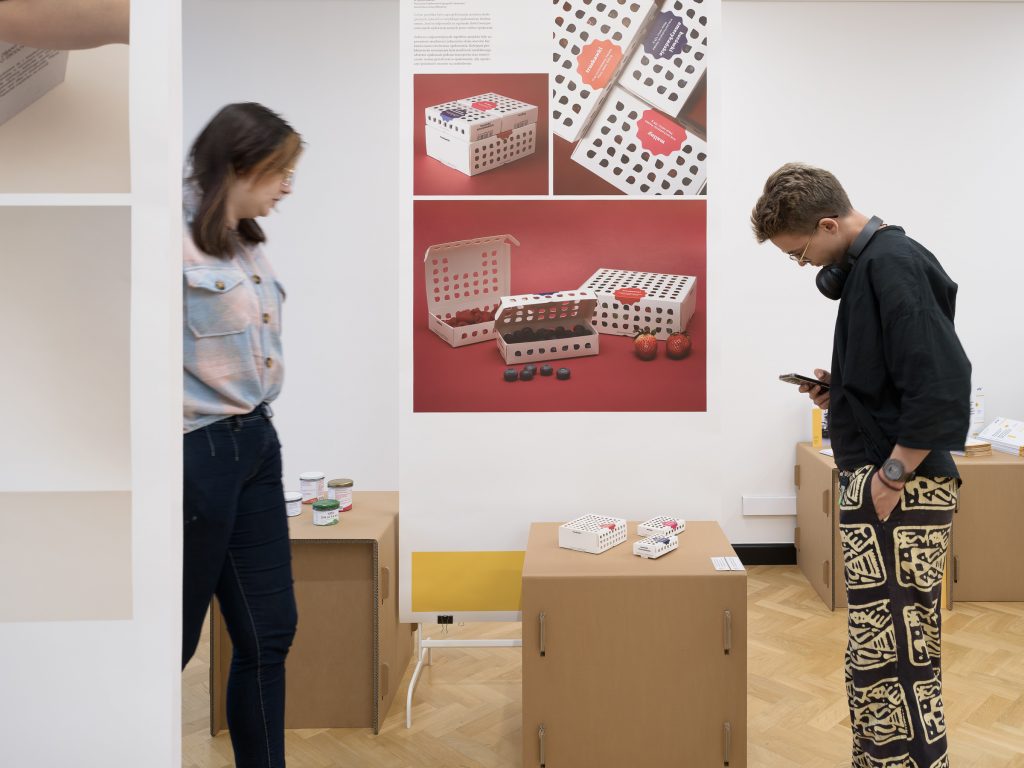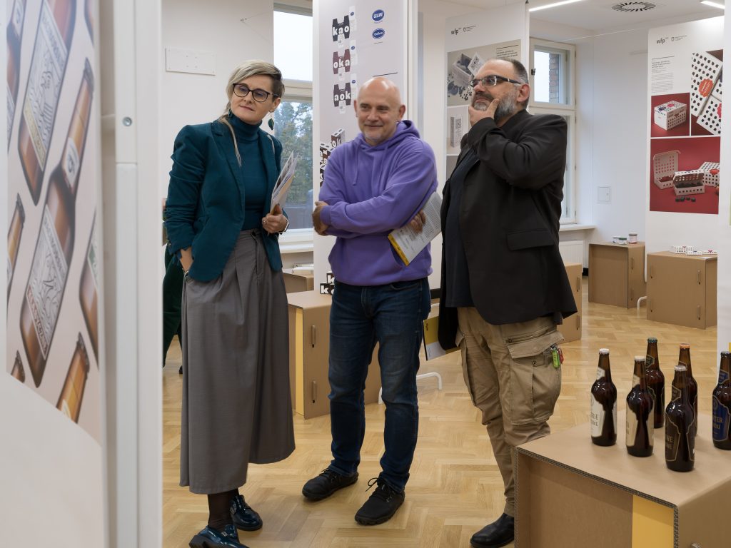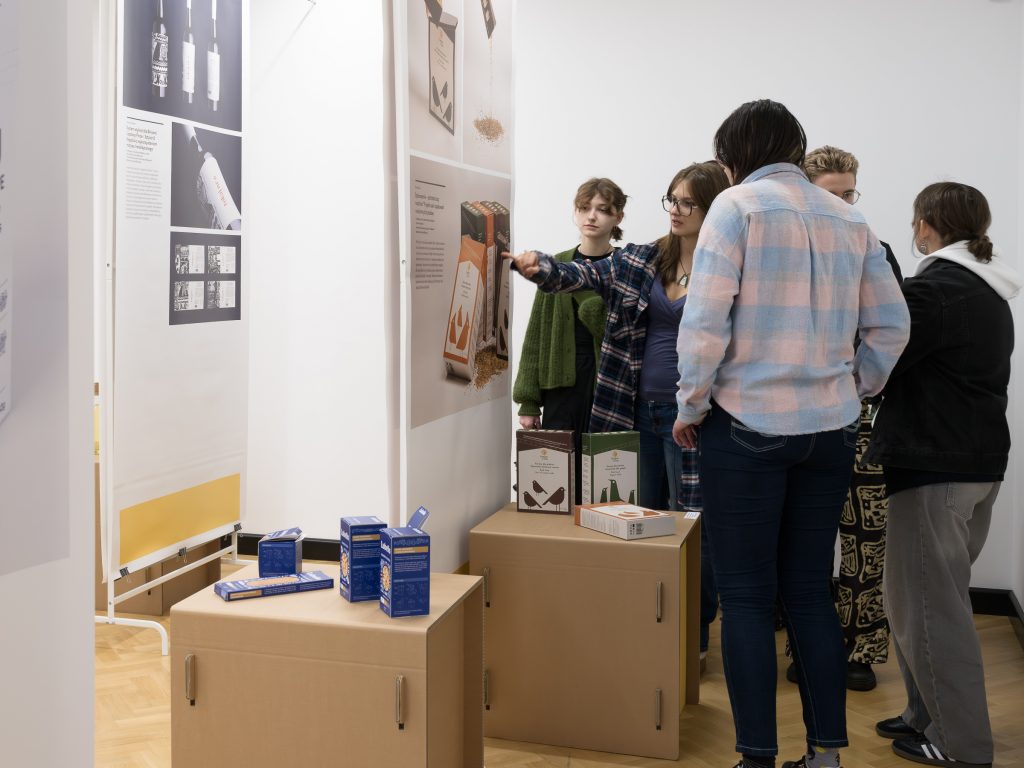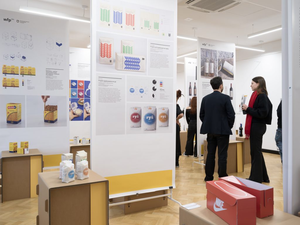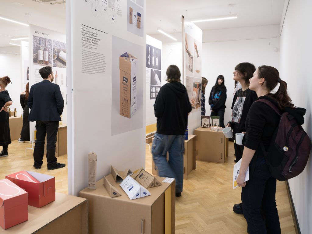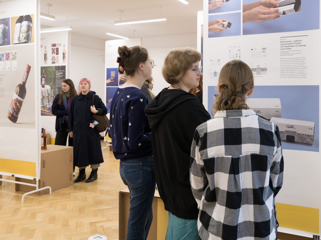 Prezentowane projekty dotyczyły m.in. opakowań – studenci i studentki analizowali nie tylko ich wygląd, ale też konstrukcję, funkcję i wpływ na środowisko. W swoich pracach uwzględniali ograniczenie ilości użytych materiałów, redukcję farb drukarskich i poszukiwanie alternatywnych, ekologicznych surowców, wpisując się w ideę cyrkularności.